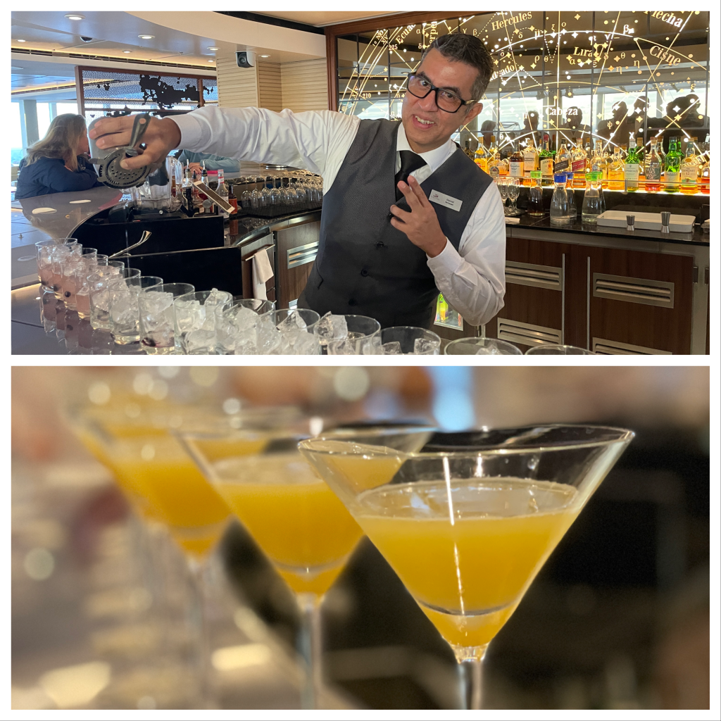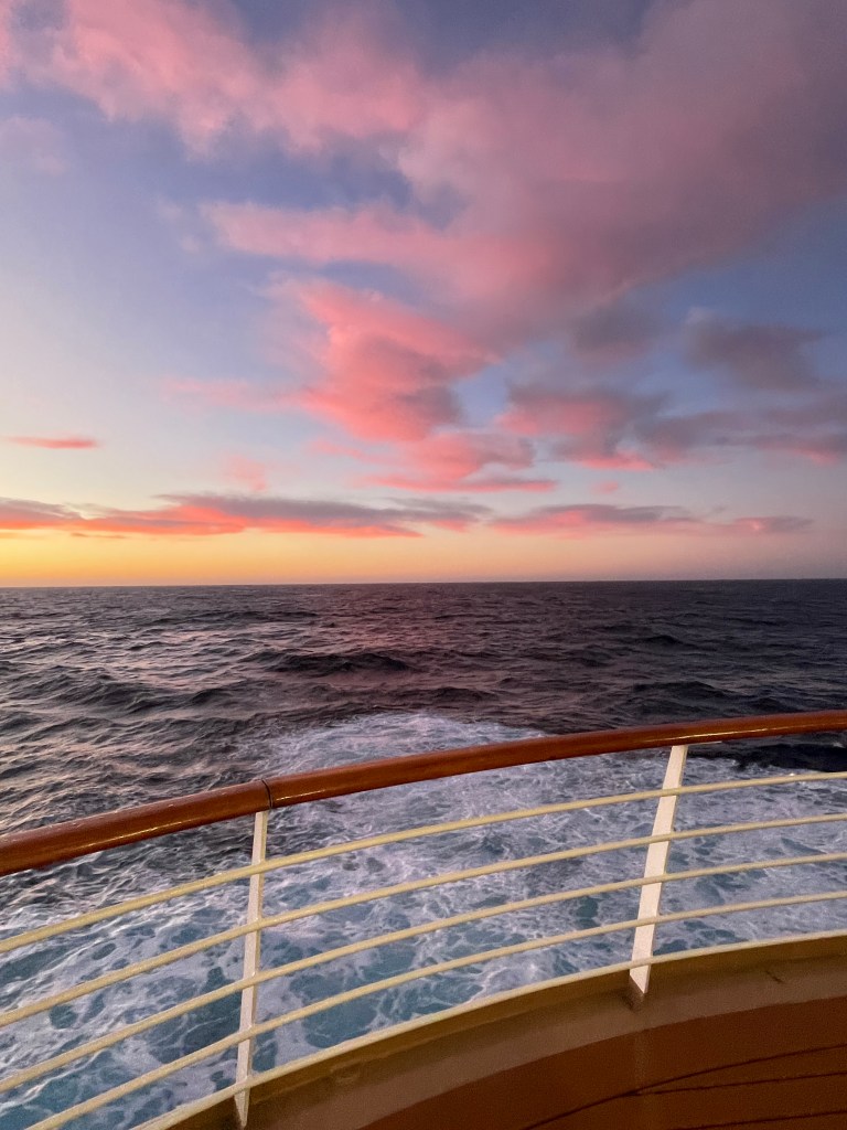 We are a day away from Hawaii. Ship life has been pleasantly predictable. Every day begins with a healthy green drink and latte….along with computer “work.” Then exercise. After that, Karla looks for activities like beginners bridge, line dancing, choir, hula, etc. I focus on reading and educational sessions in the theater. So far, I have resisted the pressure to improve my hula. An added feature is the “alphabet drink group.” It started when the ship left Ft. Lauderdale. A bartender prepares a drink starting from one beginning with A on day 1. Then, B on day 2, etc. About 20 of us are now on R.