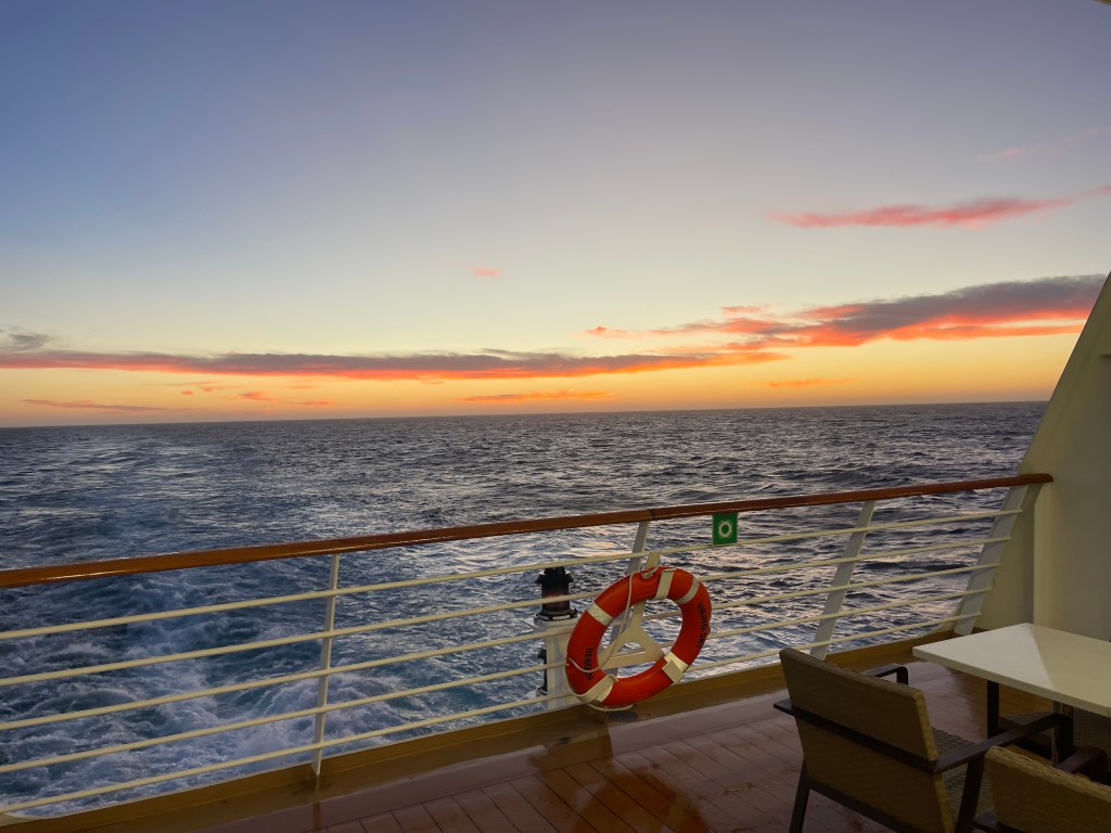 While other passengers are listening to ship lectures to prepare for our arrival, I decided to go to the experience of Captain Cook, the European who “discovered” the 10’s of thousands people living on the islands. His entourage was described as “boats of wood; men of steel.” Cook was at sea almost 4 years with 2 ships in his “fleet.” A few observations: