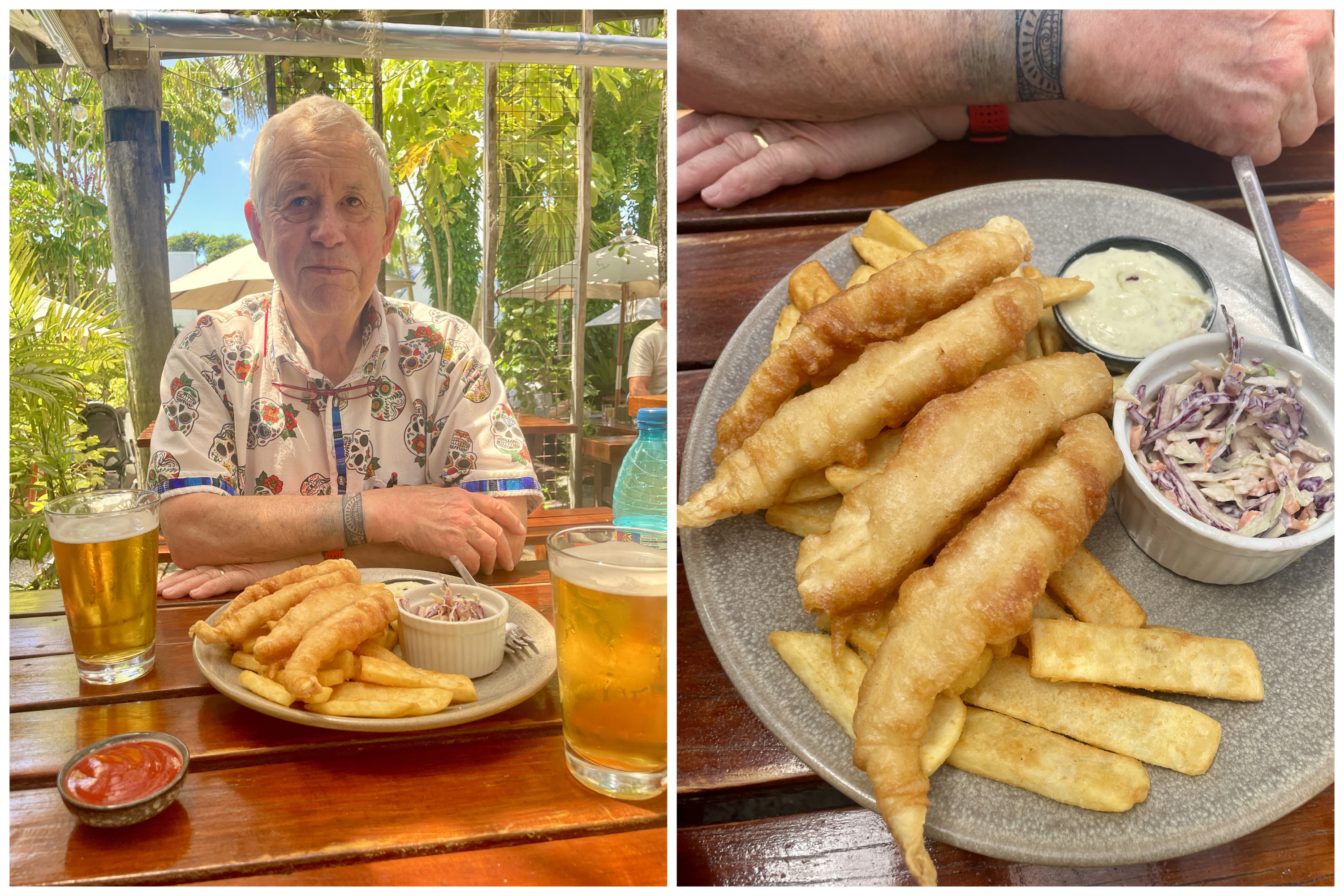 In the afternoon, we took the ferry to Russell. Great fish and chips and beer. Afterwards, Karla went shopping and walked the beaches looking for shells and watching the beach combing birds. She made it back before departure time….although ship security called and asked if I knew where she was. A good visit!