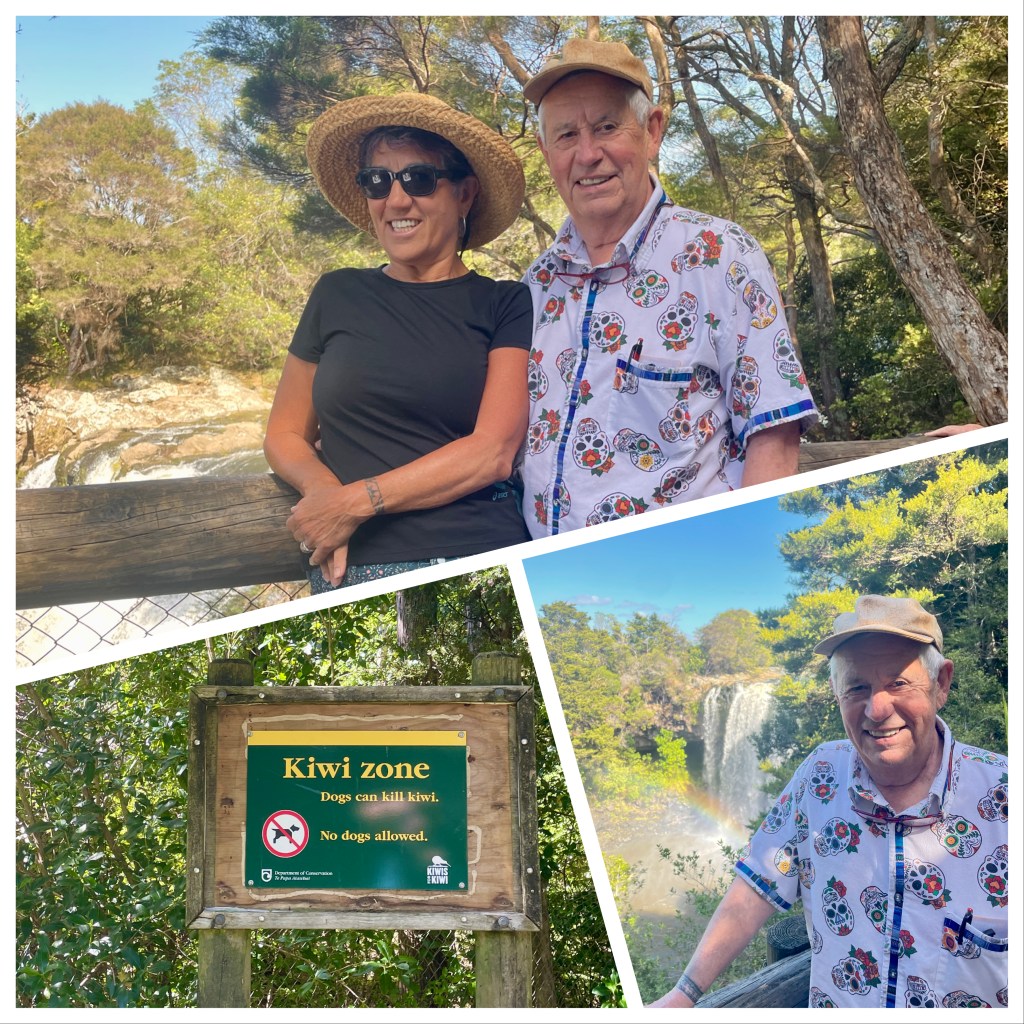 Our excursion was a 3 1/2 hour bus ride around the island. Our driver/guide took us through great rolling hills geography. There were several small towns, lots of farms and animals and a gorgeous countryside. The pleasant 75* and partly cloudy skies made it more enjoyable. We walked around a park, seeing a Maori canoe and a waterfall.