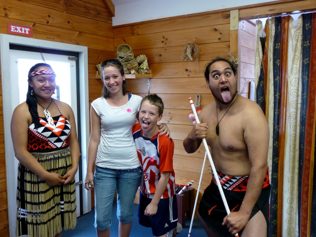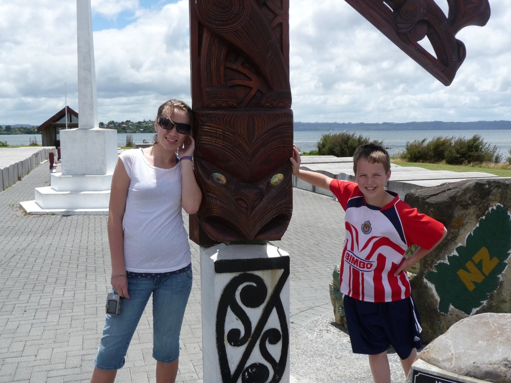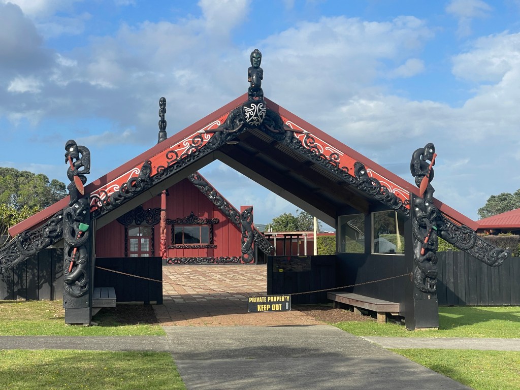 We opted for the standard included excursion….a trip around town and visit to a museum. Our first stop was at a scenic viewpoint. Like about all public spots, it was very well manicured and free of litter. After taking in the view, We walked up a nearby hill. Karla saw a Maori longhouse equivalent (murae) and took some pictures. When she was apprehended by security, she erased those that violated its sacred status. We are pleased that security forces in China and Tibet don’t communicate with those in New Zealand. They let her go with no incarceration.