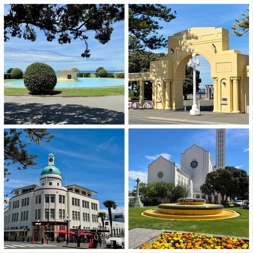 Napier is a pleasant coastal city with around 70,000 people. It seems as though lots of our stops are at coastal cities. While Napier has a history beginning with Captain Cook, followed by whalers, traders, and missionaries, it is really defined by a 7.9 earthquake in 1931. The earthquake leveled the commercial center and lots of residential structures, A decision was made to reconstruct the city in Art Deco style. It retains that style today.