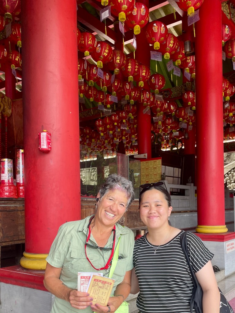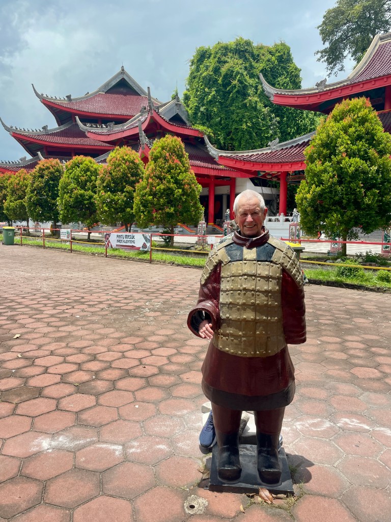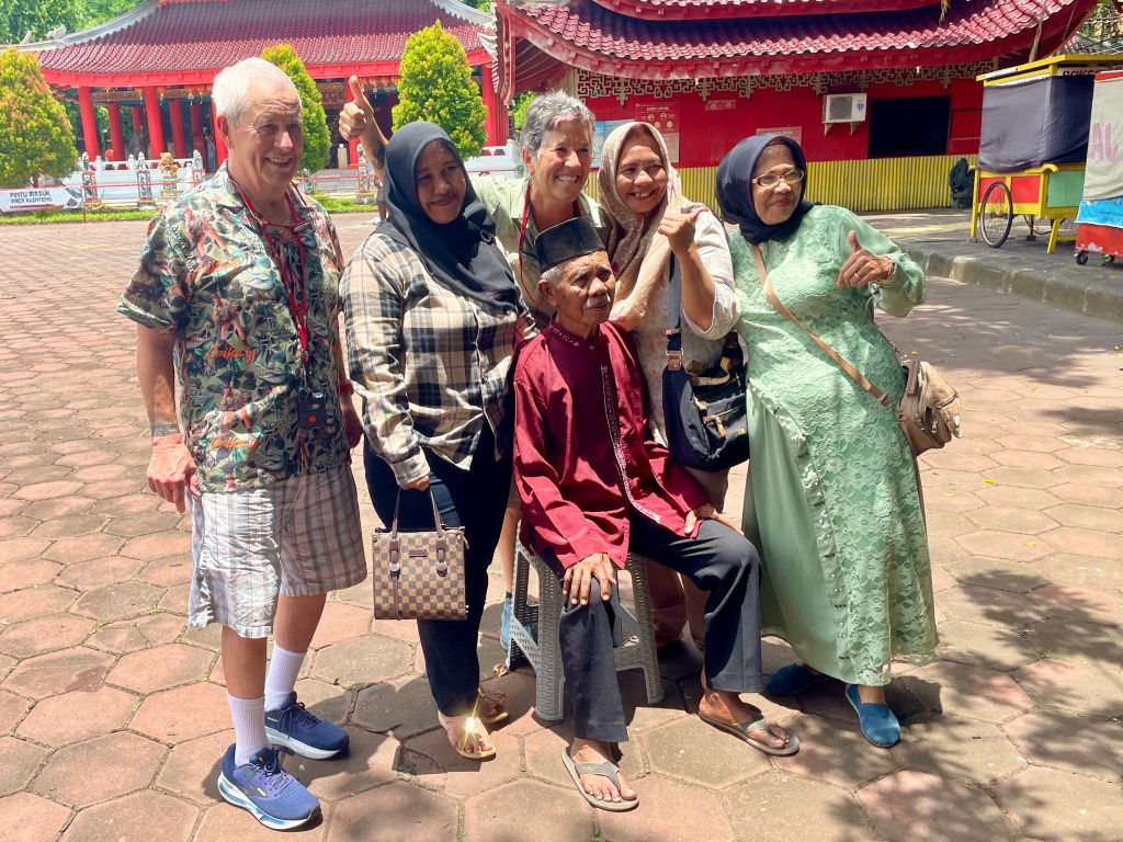 Early on, we were reminded of a Saudi tour where there wasn’t much to see and the older buildings were in disrepair. As we were taking the 45 minute ride from town to the older Dutch quarter, the guide said…”there’s a warehouse on the right”….”that’s a gas station”….”that used to be a supermarket.” The old Dutch quarter was indeed old and hadn’t been renovated. Nevertheless we saw the oldest church in Semarang, an older government building/museum and later a large Chinese Buddhist temple– Sam Po Kong. In each case, we looked for shade.