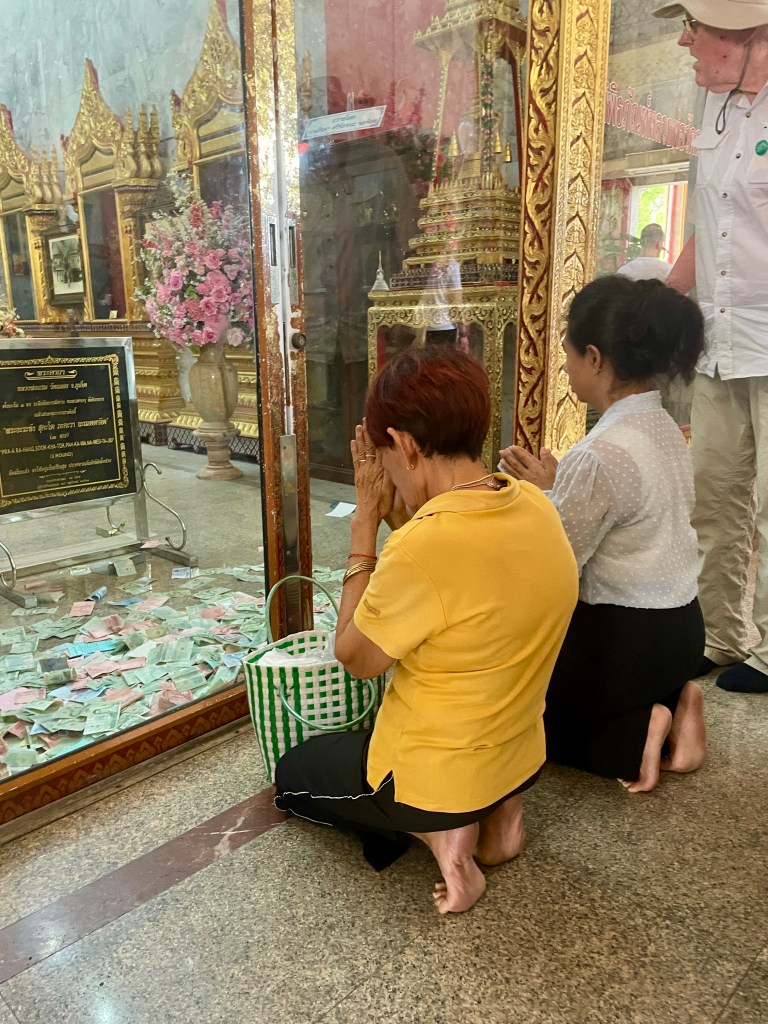 That sounded pretty good. So we arranged an island tour. We had a very good guide who led us to 2 temples and a cashew factory. Very nice scenery on the way. Karla commented that it might be fun to come back if it weren’t so hot (90-95). I’m getting about as many temples as I need, but they were nice. While Karla toured them with more vigor, I frequented the numerous small shops that spring up around all tourist sites. It’s hard to get enough colorful $5-6 dollar shirts. The cashew “factory” featured women shelling the cashews by hand, one at a time. After that brief look, we were able to enter the huge sales area and buy all kinds of products.