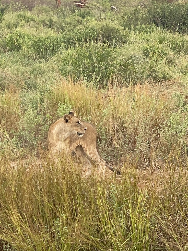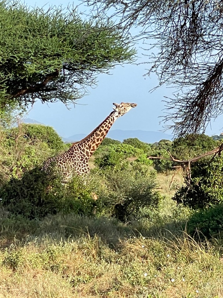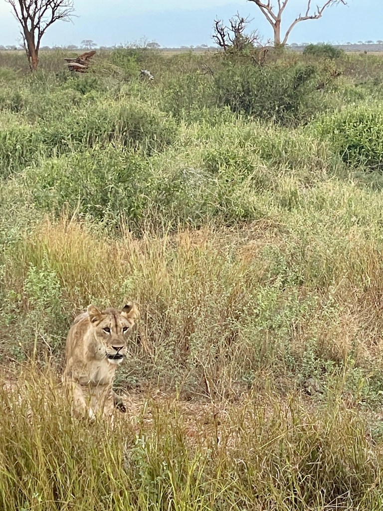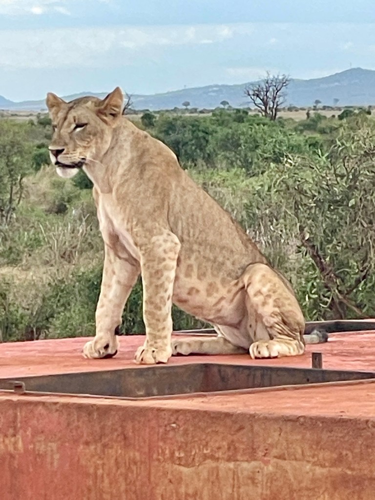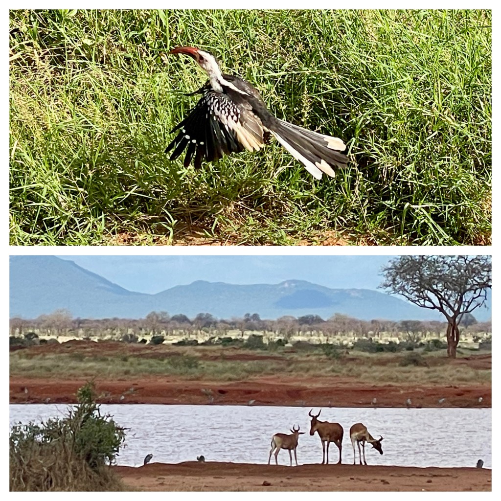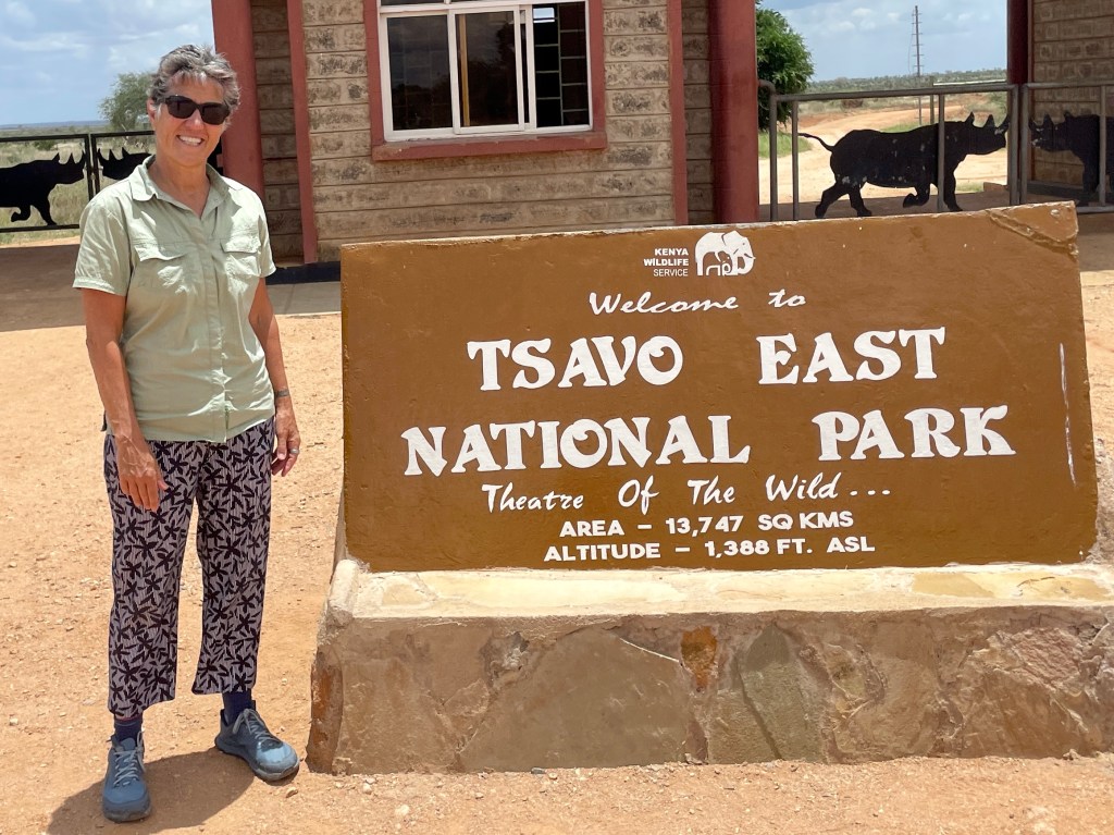 A bit about animals and safaris. The most famous game viewing, I think, is following huge migrations of thousands of animals….think Serengeti or Olduvai Gorge. More common are drives through varied countryside and viewing animals every few minutes. That’s what we did in South Africa with Maddy and Jackson and that’s what we did in Tsavo. Everyone wants to see the “Big Five.” “Big” represents the most desirable hunting trophies, not the size of the animal. For example, Hippos and Giraffes don’t make the list. …Lions, Elephants, Cape Buffaloes, Rhinos, and Leopards do. They probably would rather not be on the list, but don’t know it.