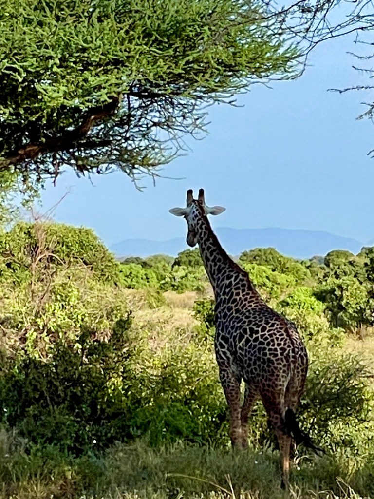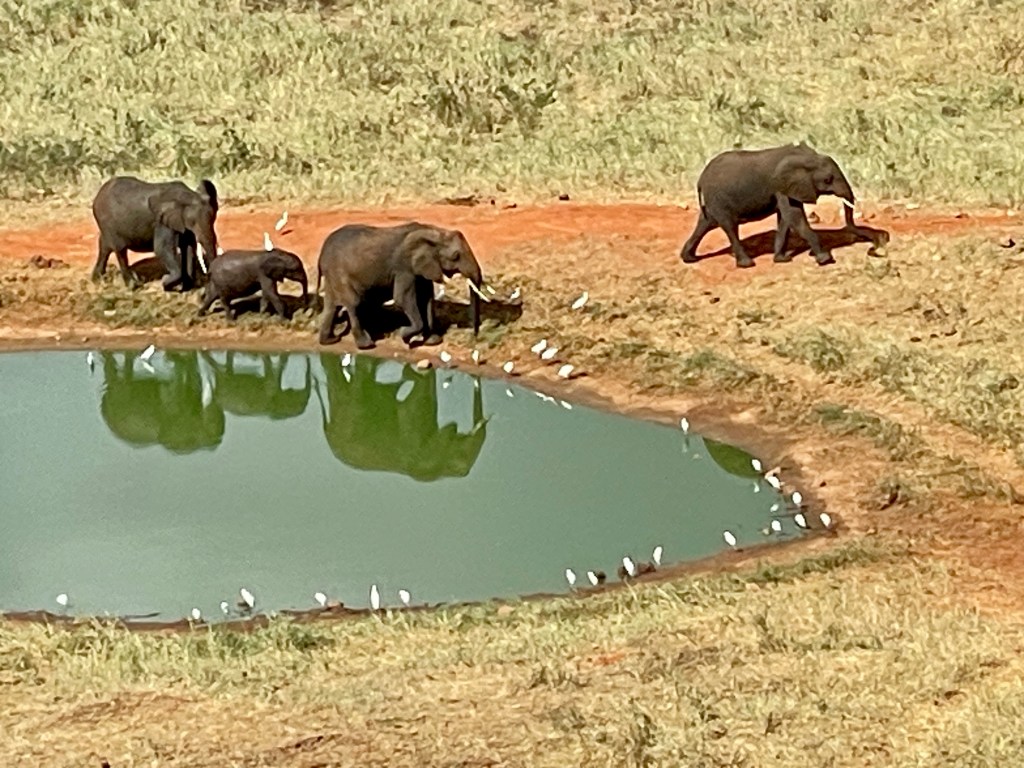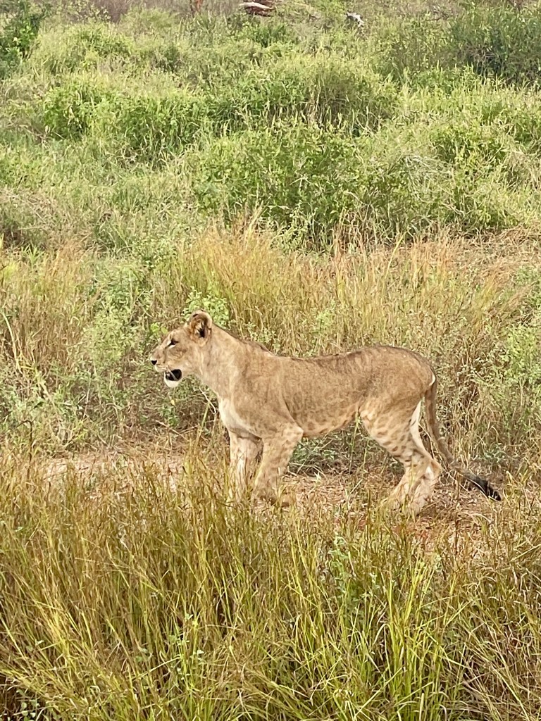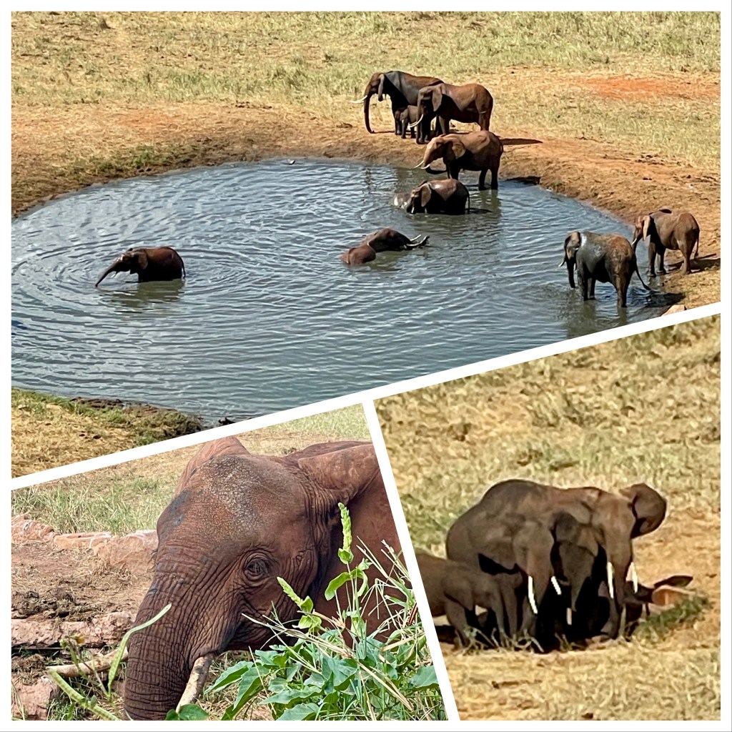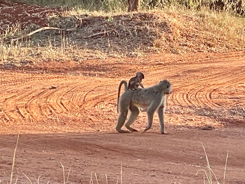A bit about animals and safaris. The most famous game viewing, I think, is following huge migrations of thousands of animals….think Serengeti or Olduvai Gorge. More common are drives through varied countryside and viewing animals every few minutes. That’s what we did in South Africa with Maddy and Jackson and that’s what we did in Tsavo. Everyone wants to see the “Big Five.” “Big” represents the most desirable hunting trophies, not the size of the animal. For example, Hippos and Giraffes don’t make the list. …Lions, Elephants, Cape Buffaloes, Rhinos, and Leopards do. They probably would rather not be on the list, but don’t know it.