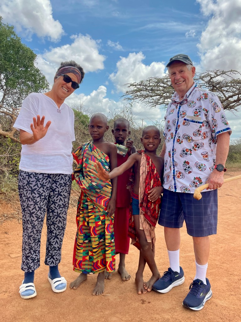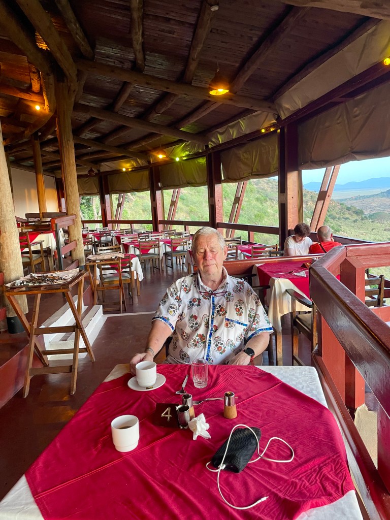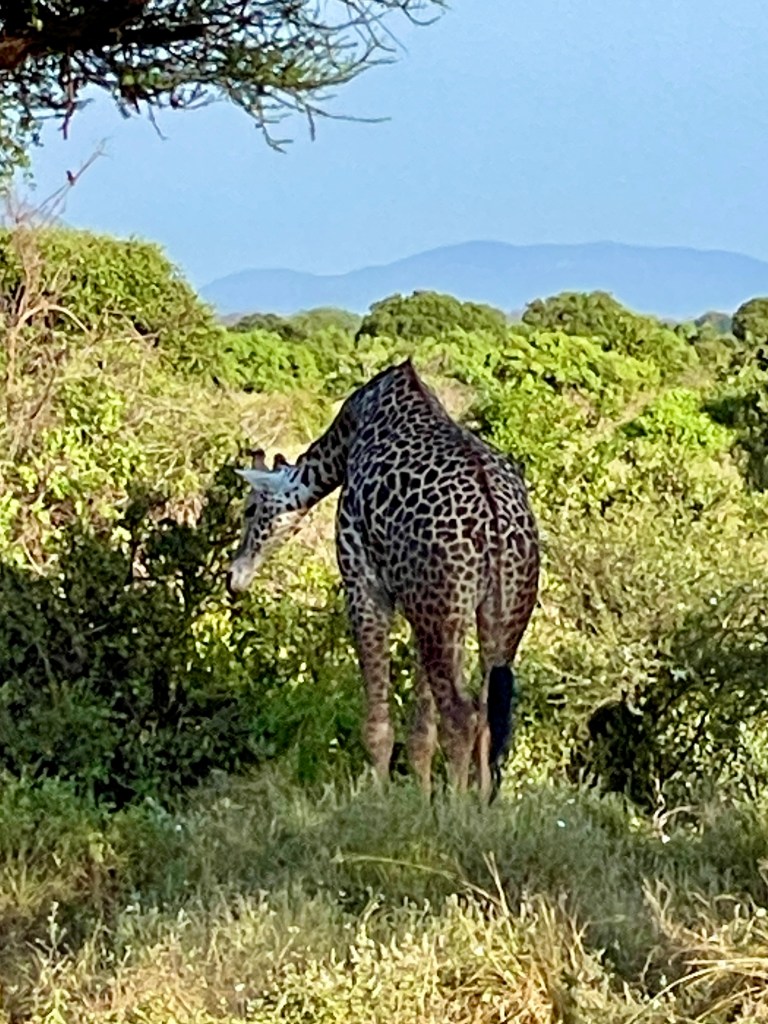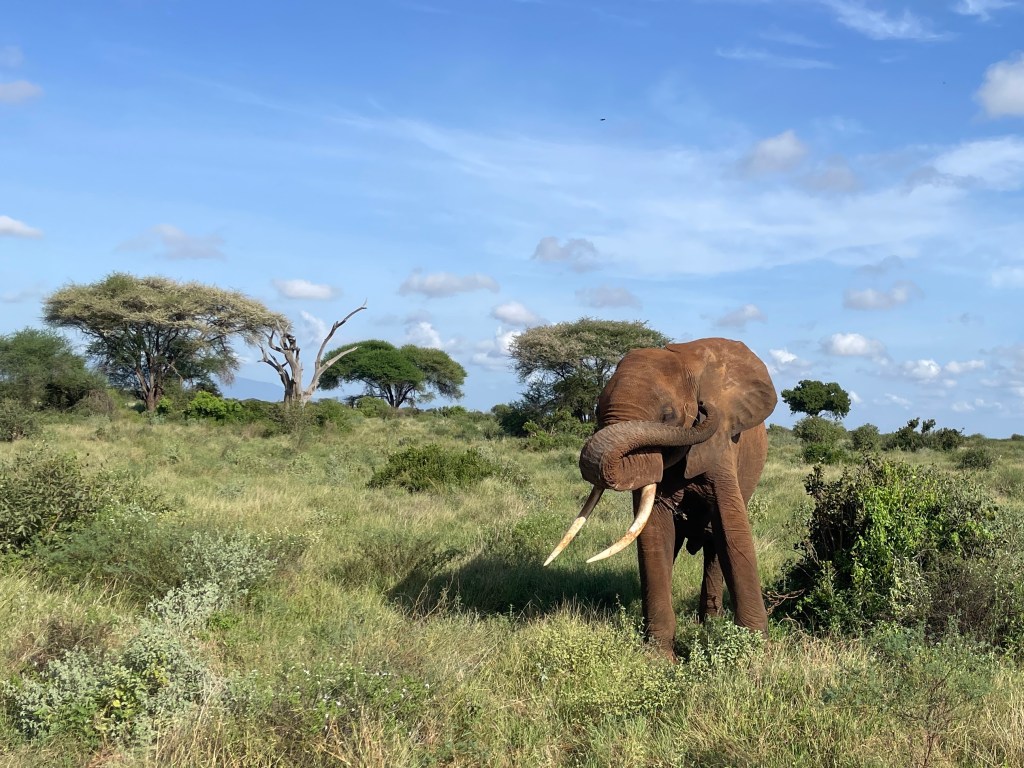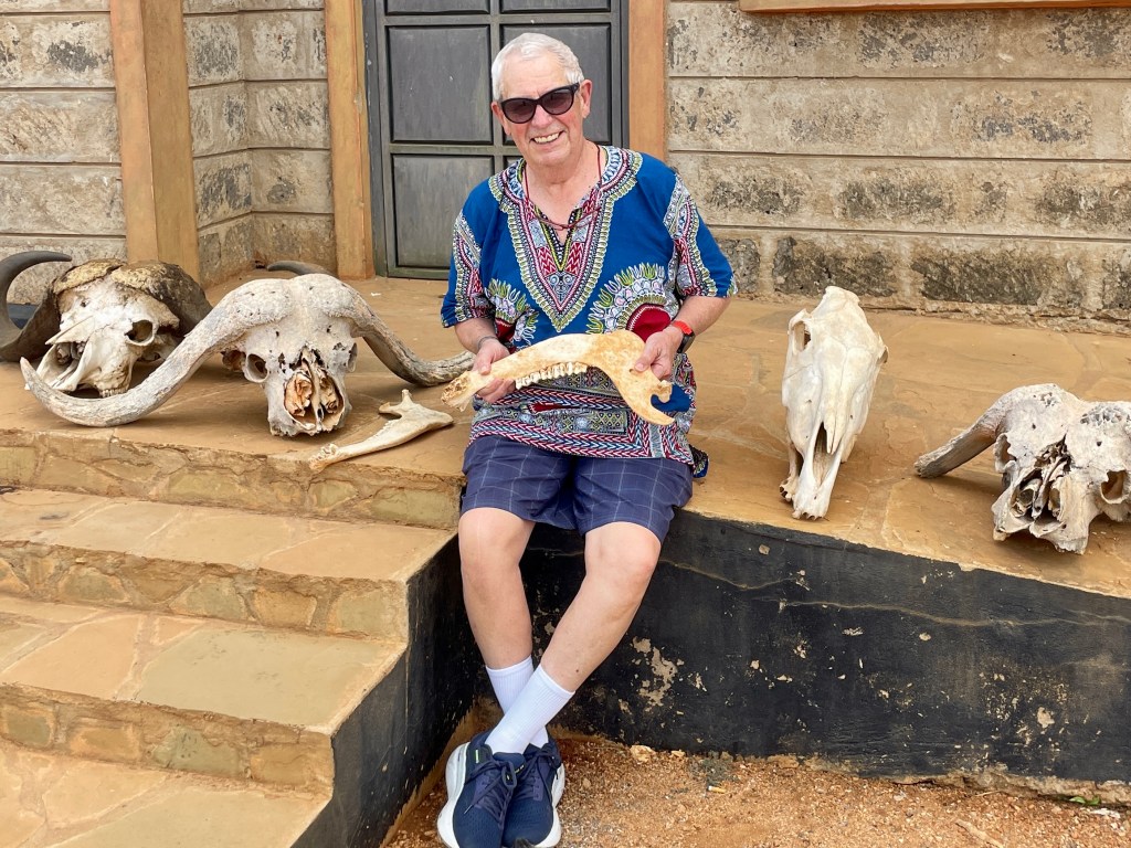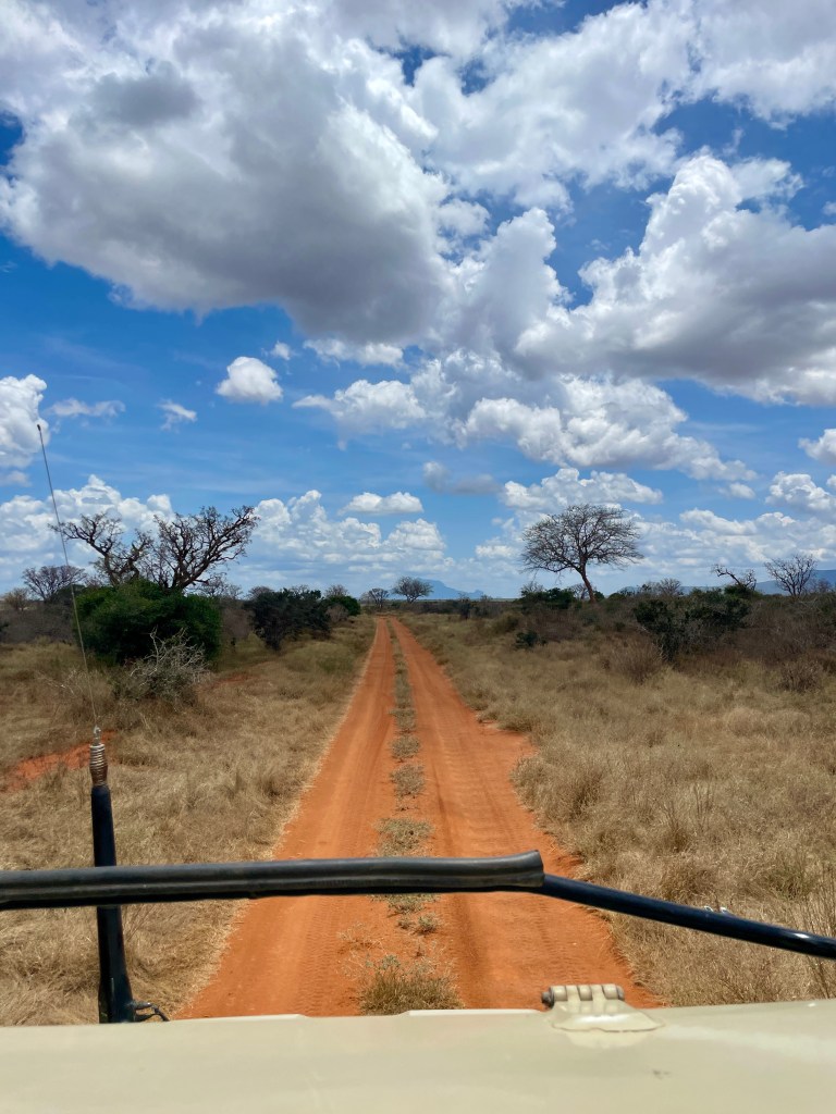 A bit about animals and safaris. The most famous game viewing, I think, is following huge migrations of thousands of animals….think Serengeti or Olduvai Gorge. More common are drives through varied countryside and viewing animals every few minutes. That’s what we did in South Africa with Maddy and Jackson and that’s what we did in Tsavo. Everyone wants to see the “Big Five.” “Big” represents the most desirable hunting trophies, not the size of the animal. For example, Hippos and Giraffes don’t make the list. …Lions, Elephants, Cape Buffaloes, Rhinos, and Leopards do. They probably would rather not be on the list, but don’t know it.