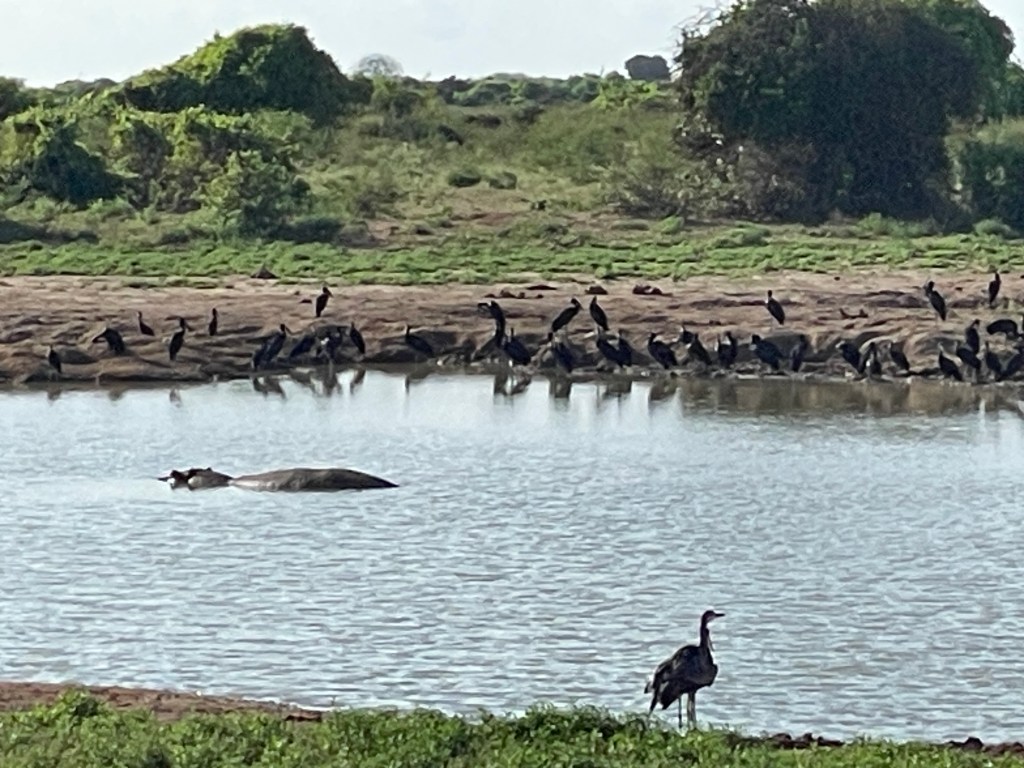 On the second day, the guide made sure that we saw a giraffe and hippo along with zebras, etc as well as lots of birds. It couldn’t have been much better. Rhinos, we were advised, were in the West Tsavo park, some 70 kilometers away.
