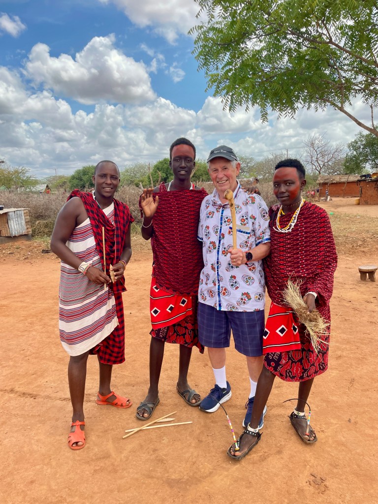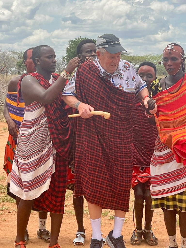 When Madagascar decided that they wouldn’t accept travelers from Zanzibar (fear of cholera), we added a day to our stay in Mombasa before heading directly to Madagascar. It would have been nice to see Zanzibar, but the extra day in Mombasa was welcome. Our group photographer prowled the internet (in Kenya, one prowls rather than searches) for an overnight safari. She found an opportunity to be driven to Tsavo East Park, stay in a park lodge (Voi Lodge) with a great view of watering holes, and then return to Mombasa after a long game drive the next morning. We had the best game experience ever. In fact, we changed a couple future excursions aimed at game parks….there’s nothing left to see. That’s not quite true, but it would be hard to match our experience. On our way back to Mombasa, we stopped by a Masai village for an informative visit.