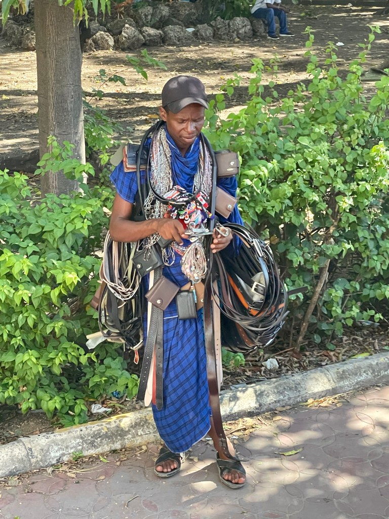 -I used to say in South America 50 years ago that you could get an insight into the economy by observing men shining shoes or the number of prostitutes. If one didn’t have a job, those were potential sources of income. In Mombasa, there are lots of people selling craft items or tending very small shops or driving tuk tuks. A guide told us that many of the tuk tuk and motorcycle drivers were renting the vehicles daily and could only keep what remains after their daily payment to the vehicle owner. It is a scrappy life. They are hard bargainers…but pleasant….because if they have a potential customer, they want to maximize their income.