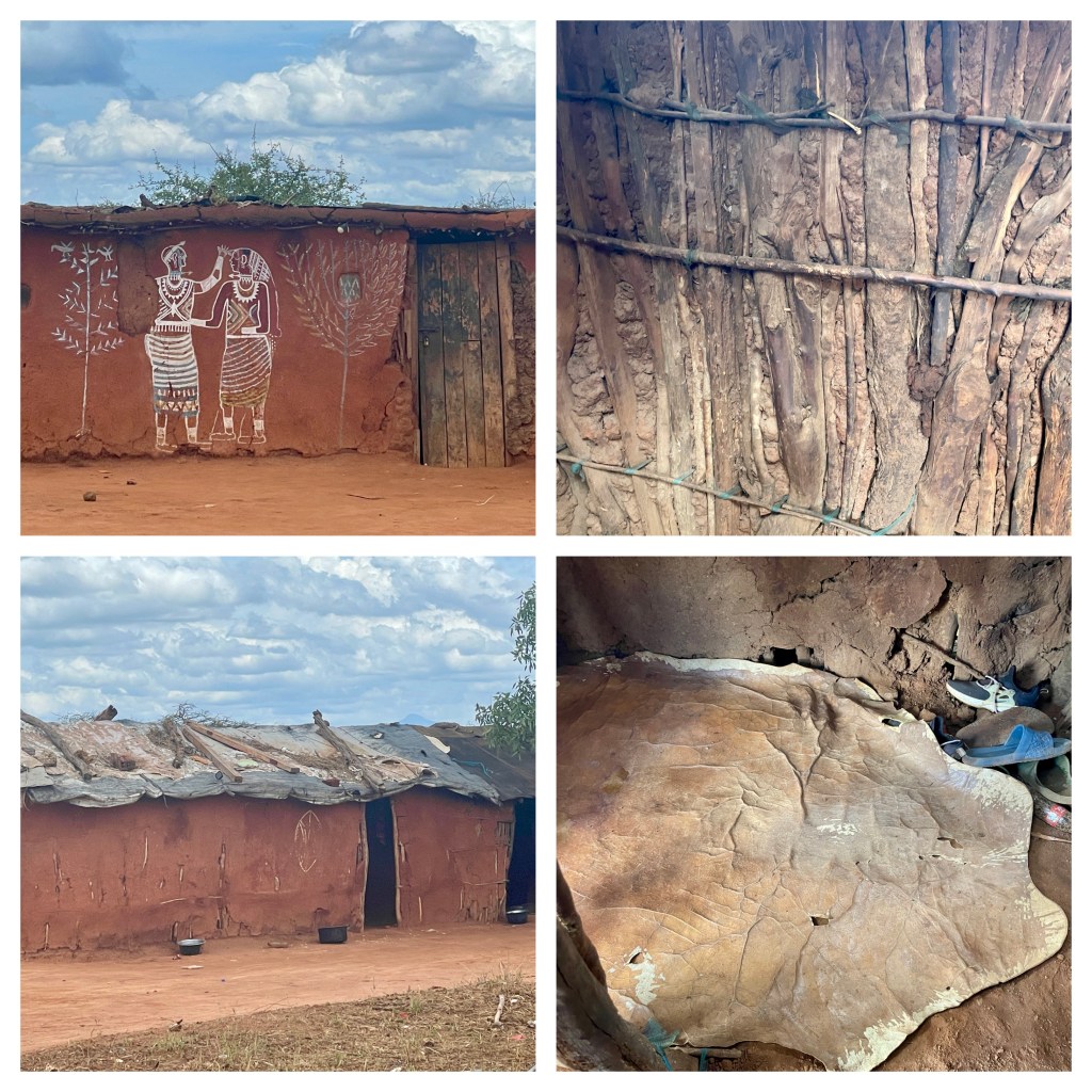 On the way back, we stopped at a Maasai Village. It was interesting to see their houses of sticks and cow dung. They are a semi-nomadic group with the men going out to shepherd their cattle and goats in the wild and the women and children staying in the village. Upon entering we were met by the chief’s son (one of 35 children from the chief and his 10 wives) and we were asked to make a donation ($20 each).