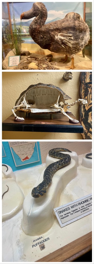 We weren’t expecting much from our excursion and we weren’t disappointed. It was billed as a visit to a museum and a visit to a beach. We did both. Actually, the museum and beach were both nice. But, we got little from our guide and the bus driver got lost. The drive took us through some nice residential neighborhoods (one by mistake)…and by a Black township, which was predictably pretty run down. It was a relaxing way to spend the day. Incidentally, the museum’s collection is known for a dodo bird egg found in the late 1800s and early hominid footprints that were found at the beach we visited (Nahoon Point Nature Reserve), encased in rock in the calcified dunes.