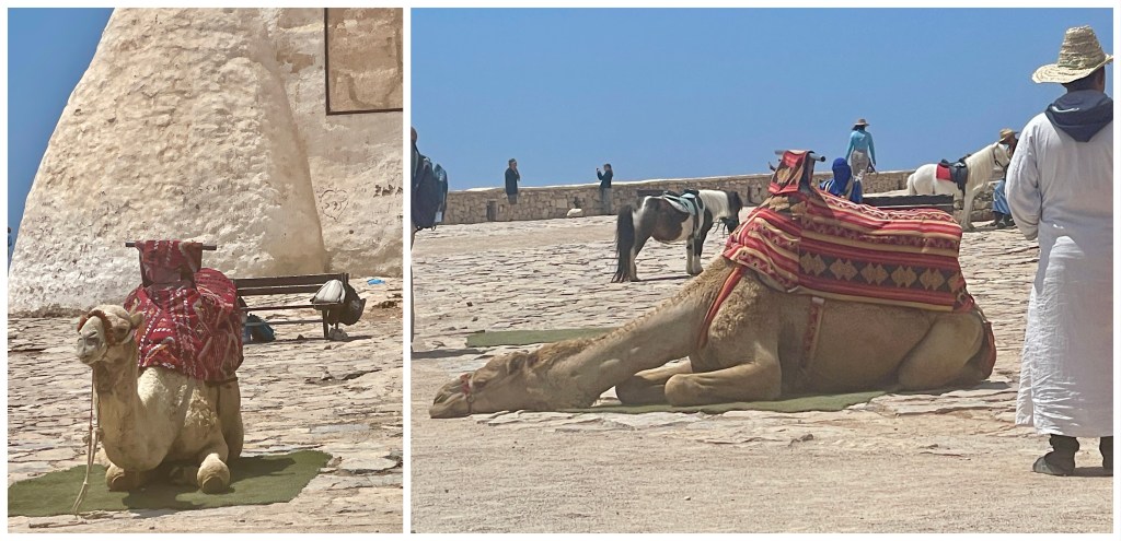Besides the castle…which had innards destroyed in the quake…tourists could ride smelly camels or hold snakes for photos. Of course, there were tourist tables. After that we visited a mosque, botanical garden, small veggie market…all pretty standard. The tour was OK, as was the cold beer Karla stopped for as we entered the ship, ready to head to Casablanca.