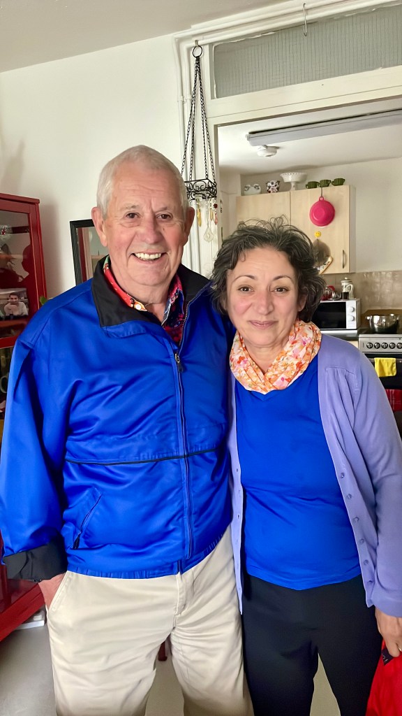 With Judy and Bill Murden, from previous world cruise, who were boarding in London to travel to NY; and Ted and Rose Brooks.