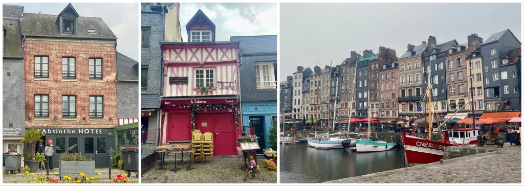 As we wind down, Honfleur looks like the perfect stop. Google says, “Ports don’t come any prettier than Honfleur on the Seine estuary.” It has a population of around 8000 people– fewer than 100 years ago. Guidebooks say that a tourist needs a half day there; usually, they say at least 2-3 days for a location. It’s about a 2 1/2 hour drive to Paris. What’s better than a small, walkable, historic town when most of your shipmates are spending the day in Paris? Cobbled streets, medieval architecture, and more.