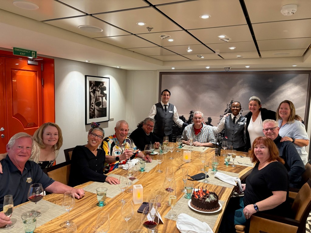 9. A Floating Village. Being together with 950 people for 4 months is always interesting. We find lots of people we enjoy and some we avoid. Some die; some get kicked off the ship..it’s like other villages. One of our friends commented on the 80/20 rule….20 percent of the people cause 80 percent of the problems. One friend said it was tough for introverts. I happen to be traveling with an extrovert so we meet more people than most and I benefit from that.