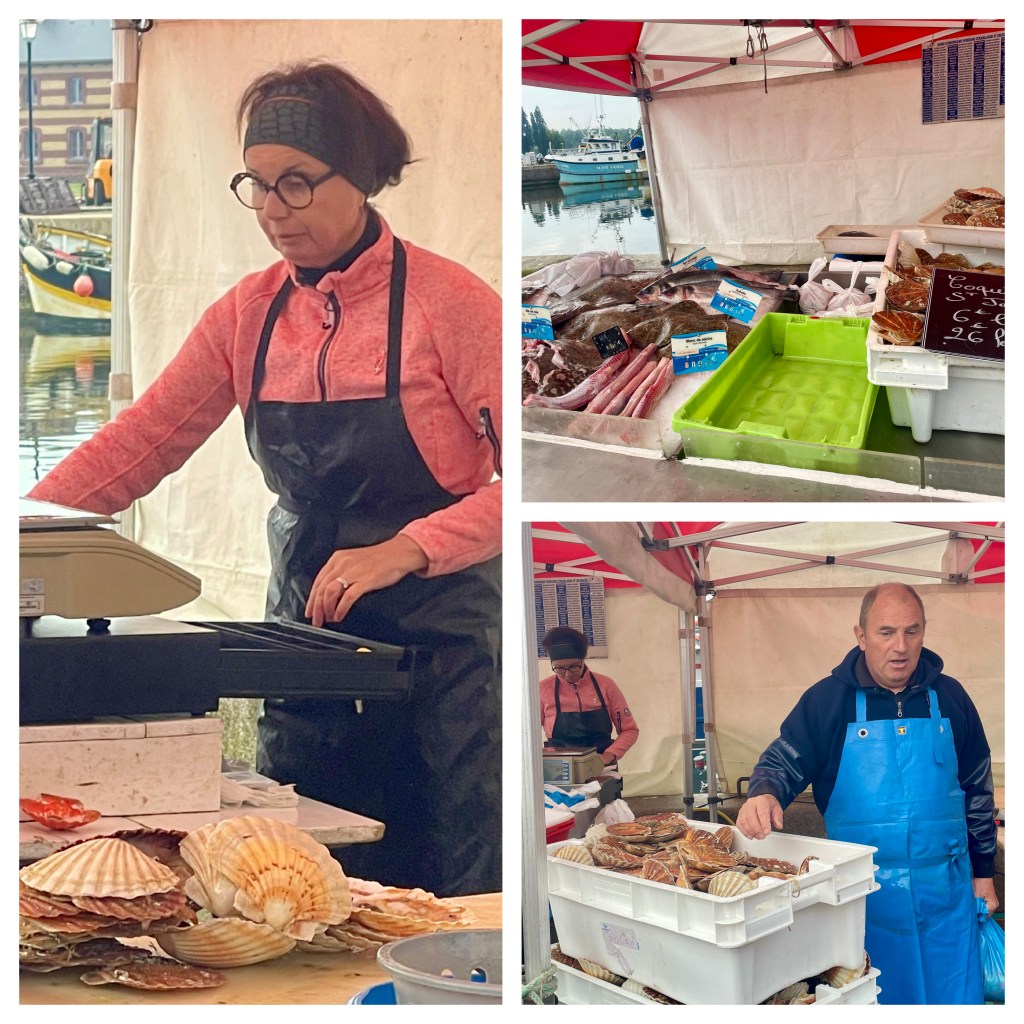 Honfleur, a small town on the Normandy coast, was established as a port in the 12th century, shipping goods to England. It was occupied and unoccupied as the French and English pursued their variety of wars. In the early 17th century, it peaked as a port for trade with Canada, the West Indies, and Africa. Slaves were an important commodity. More recently, it has become a relaxed home for artists. I think that we’ll find a relaxed, out-of-the-way cafe for lunch. I wonder if they have wine there?