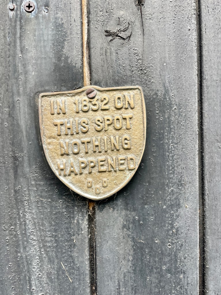 Victorian era lighthouse used to warn mariners; we love the signs.