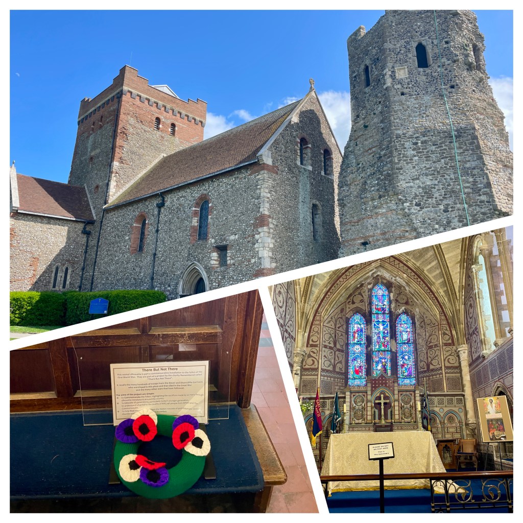 The structure to the right of the church (top) is one of 3 surviving Roman lighthouses and dates to the 2nd century CE. The bottom left photo is of a plexiglass clear chair in the church, standing for those lost in WWII.