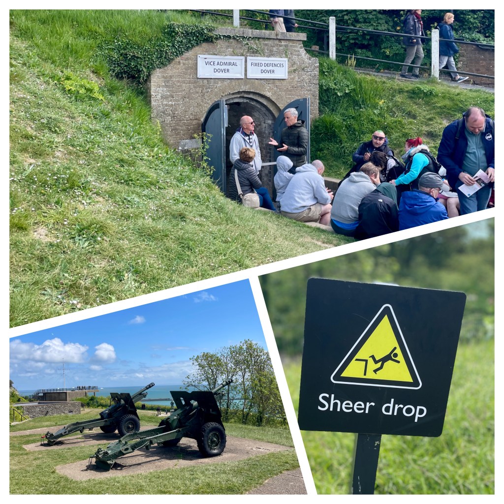 The famed white cliffs mentioned by Julius Caesar in 55BCE when the Romans were looking for a landing place. The white cliffs are from geologic activity and the white sea bottom mud (formed by sea algae skeletons turning to chalk).