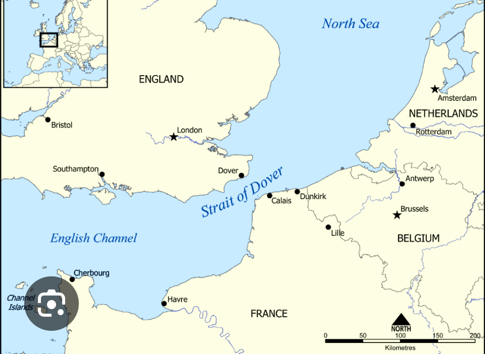 Our route– to Dover from France and then up and around the corner and down the Thames to Greenwich (just outside London). May 4