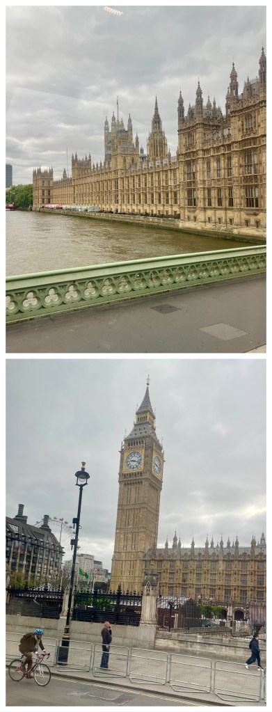 Parliament Building and Big Ben (on the way to the airport. Viking does a good job of herding cats. We were split into departure times, moved to a bus…after identifying our luggage…and delivered to Heathrow. I am now sitting with Karla in the FIRST CLASS lounge. My mission is to drink enough wine to facilitate sleep on our 9 hour flight. We leave about 1:30pm and arrive in Seattle at about 3:30pm; It’s amazing how fast planes travel these days! Next challenge is overcoming jet lag.