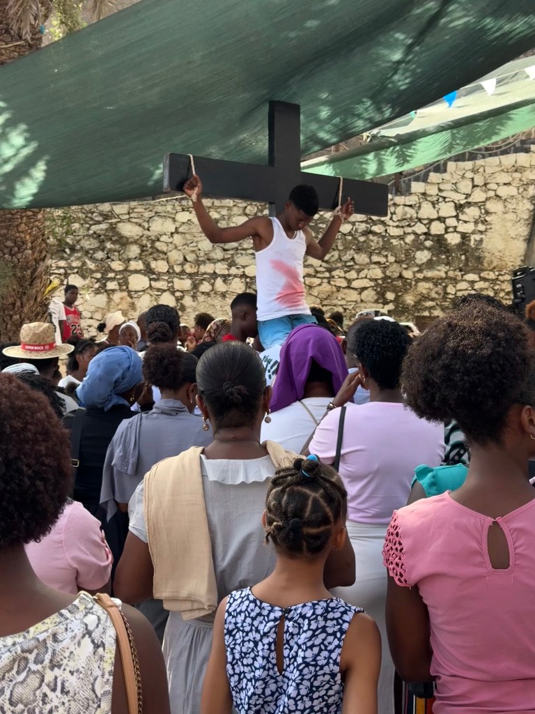 The procession ended at the church with simulated crucifixion