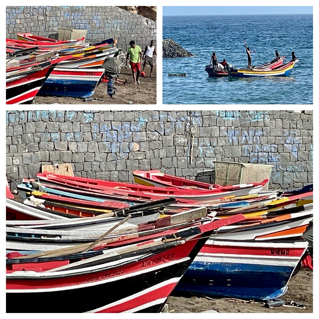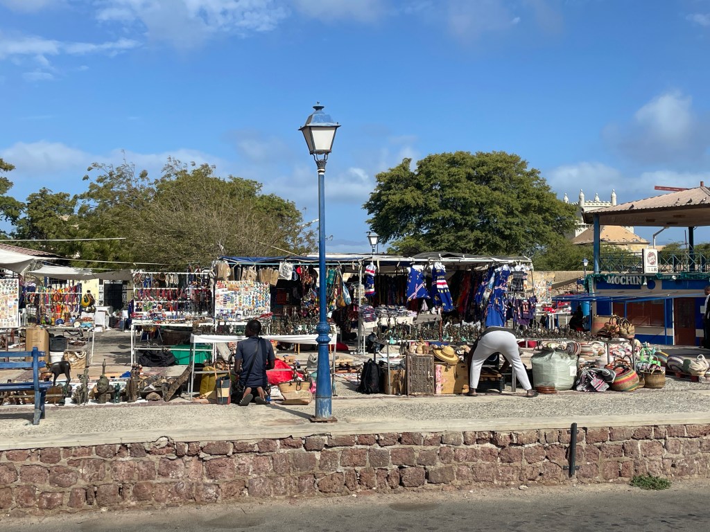 Our experience was positive enough for us to cancel our excursion on Mindelo. We had been here before and there’s a limit to how much time we wanted to spend driving around a barren volcanic island. We recalled an impressive Senegalese market from our previous visit and thought that we would walk there. We passed a nice fish market and then arrived at the African market, finding it about twice the size that we encountered a few years ago (Covid times). It helps that we have downsized and were not interested in purchasing the attractive masks, carvings, clothing etc. A nice visit; we have positive feelings about Cape Verde.