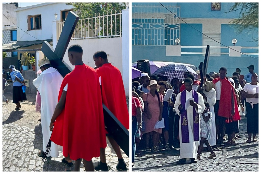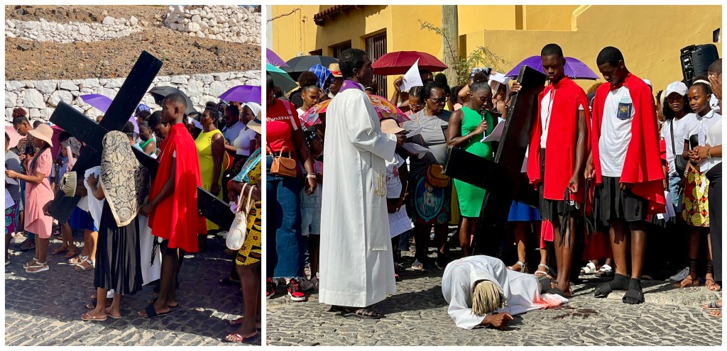 We had a nice excursion in Praia. Our first stop was a pleasant pedestrian street. It would have been fun to visit without all of the Good Friday closures. We proceeded to a fort which was placed on a strategic hill guarding “Old Town.” Old Town is located on a protected bay that was a focus for traders, ship suppliers, slavers, and pirates.