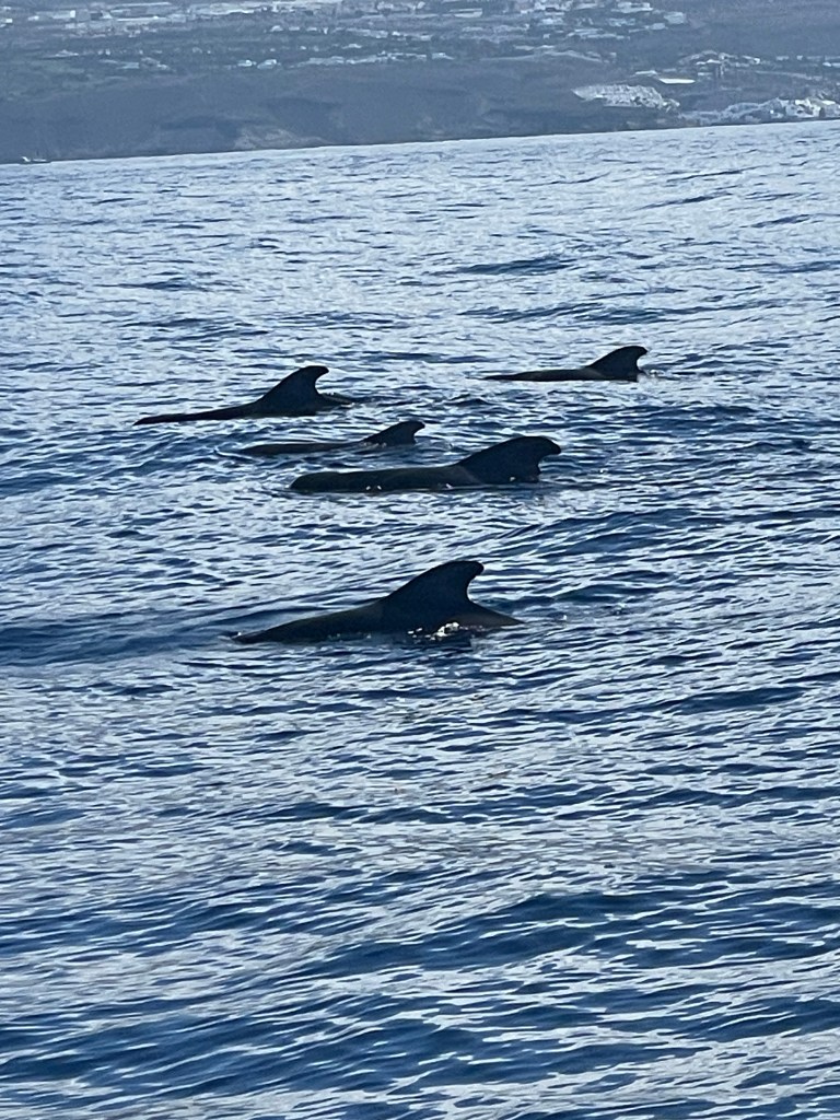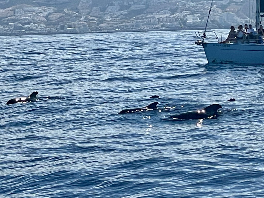 We entered the port with choppy waters, 20 mile winds and a forecast of rain. We prepared for our whale watching excursion with plenty of clothes. However, we had a low wind, 75* day with no rain. We saw plenty of pilot whales…short fin, of course…on a relaxing 4 hour cruise. It included sangria and a rendition of paella (Canarian rice). The day was pleasantly uneventful. Karla went to town upon our return and found it to be some flavor of charming.