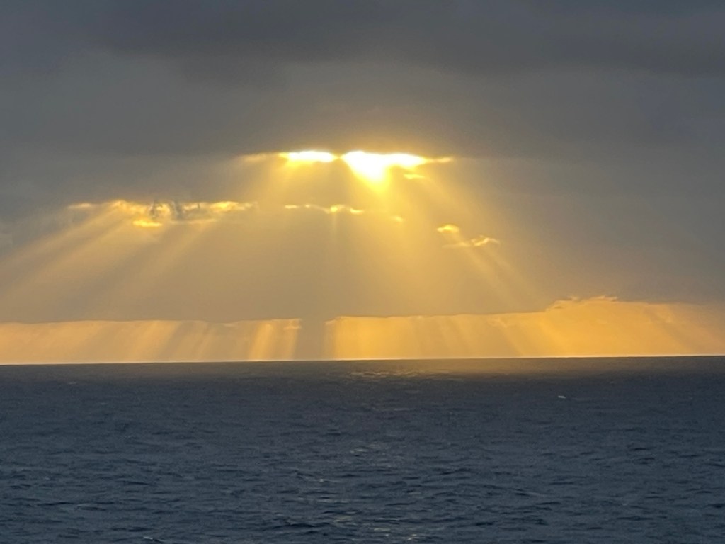 However, we have an excellent wildlife specialist on board who gives briefings each morning on what we might have seen. Occasionally, he mentions a “spotting” from the previous day. And, participants of dubious veracity comment on the dark spots on the distant horizon that may be whales. But, we have seen a few creatures and learned about some that we have not yet seen. It is comforting to know that we’re near the continental shelf where currents stir up food and that we’re on a whale migration path. As we near Cape Verde, the specialist is optimistic.