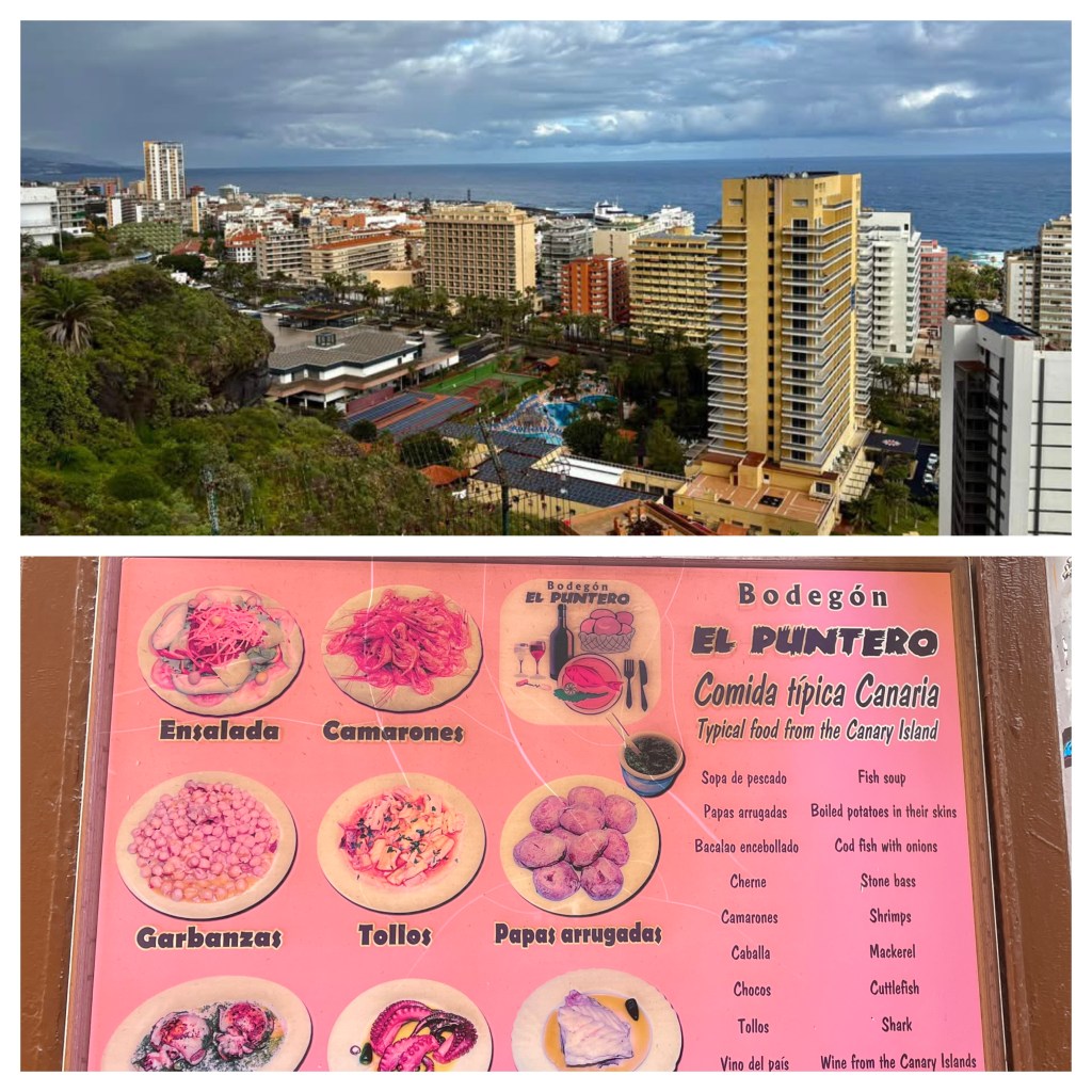 We last visited the Canary Islands 12 years ago with Maddy and Jackson. That was on our last ever cruise with Holland America. The Canaries have a population of about 1 million; 200,000 of them live in Santa Cruz de Tenerife, one of the 2 capitals. The islands are an autonomous community of Spain. It’s markedly different than the African countries we’ve just visited. ..an upscale tourist vacation spot for Europeans.